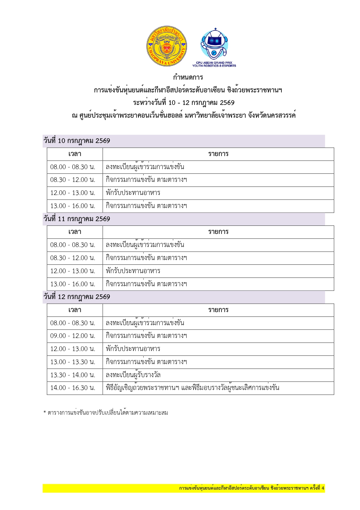 รายชื่อทีมสมัครเข้าแข่งขันหุ่นยนต์แยกตามรายการ
